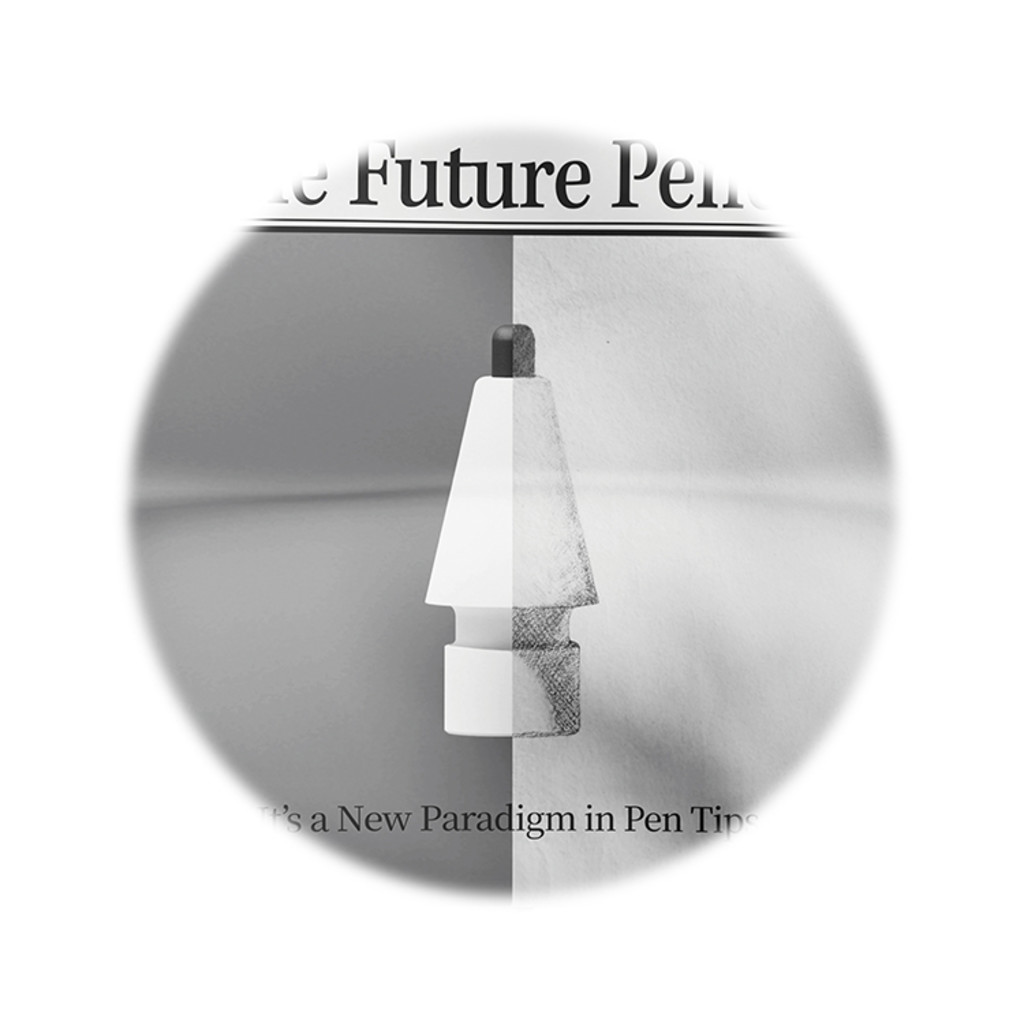 THE HYBRID PEN TIP BRIDGES ANALOG AND DIGITAL EXPERIENCES IN A SINGLE FORM. MADE FROM A SEMI-PERMANENT GRAPHITE MATERIAL, IT RECREATES THE TEXTURE OF A REAL PENCIL AND CAN BE USED NOT ONLY ON DIGITAL DEVICES BUT ALSO ON VARIOUS SURFACES SUCH AS FABRIC, WOOD, AND PLASTIC.